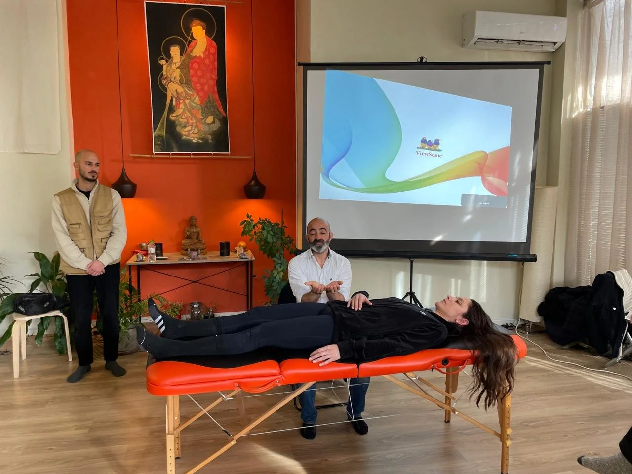 Δάσκαλοι και θεραπευτές αξιοποιούν την ευρύχωρη και ηλιόλουστη σάλα, που μπορεί να φιλοξενήσει μεγάλες ομάδες και είναι εξοπλισμένη με τα απαραίτητα βοηθήματα για bodywork sessions.